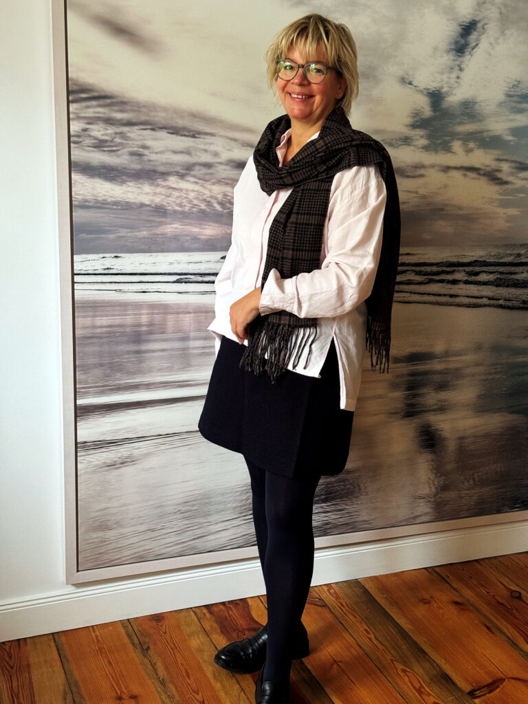 Hier ist nicht nur der letzte Tag der Outfitinspirationen, nein, es geht heute auch nach Bremen zurück und ich trage meinen neuen Wohnrock. Ich liebe meine Herbst-/Winterröcke tatsächlich alle sehr, aber dieser hier hat mein Herz gerade besonders. Ich kombiniere ihn mit der Bluse und dem Langarmshirt vom Mittwoch und den Loafern. Der Schal war gestern ein Notkauf, als es mir draußen am Hals verdammt frisch war. Allerdings wurde mir die Brosche unterschlagen, der Schal hat aber auch nur die Hälfte gekostet;).