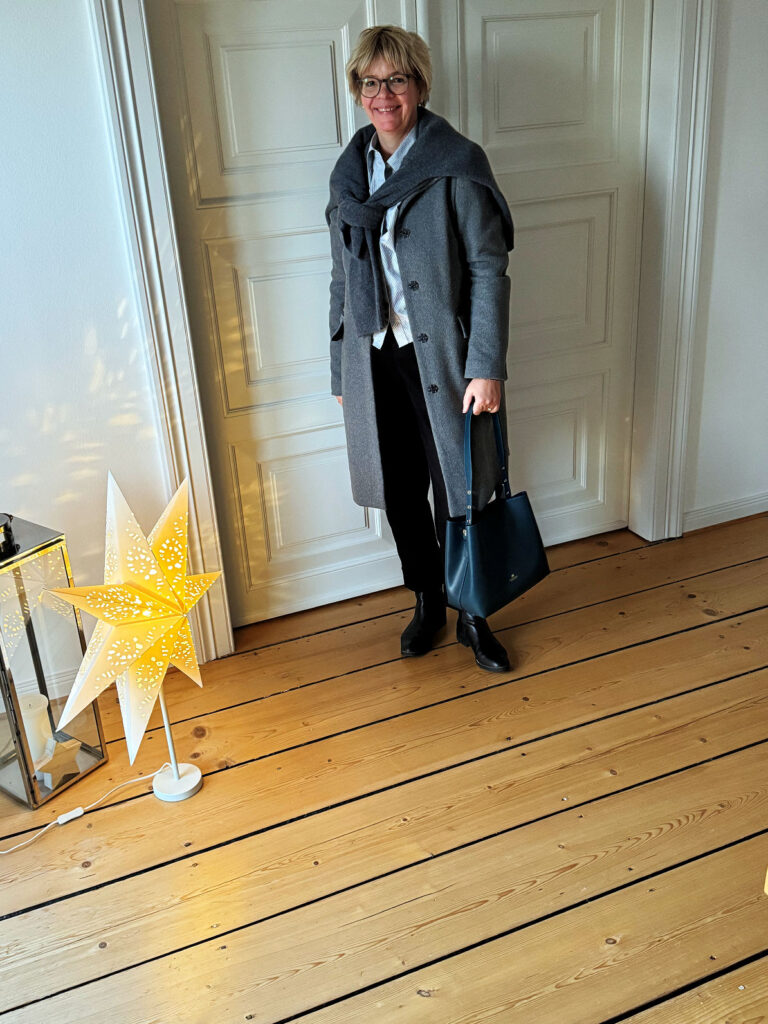 Alte Heimat, verbunden mit alter Nachbarschaft, Teil 3: Heute besuche ich meine A-Familie. Momentan ist die Fahrt immer wie ein Überraschungs-Ei, denn man weiß nie, wie lange es dauert. Aber das macht nichts: Ich höre und trällere meine Weihnachtsplaylist. Warm ist es gefühlt auch immer noch und somit hole ich meinen mega alten Herbstmantel hervor. Da ich aber ja nicht mit nichts darunter losfahre, sieht das Outfit wie folgt aus:
