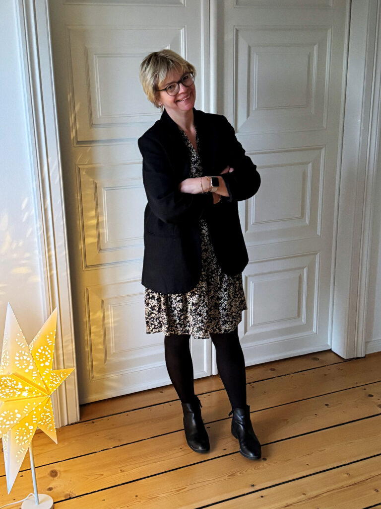 Das Outfit ist aber erwachsen: Das Kleid vom Mittwoch wird heute mit einem schwarzen Oversized Blazer kombiniert. Dazu gefallen mir die schwarzen Stiefeletten auch gut und so rase ich durch den Tag.
