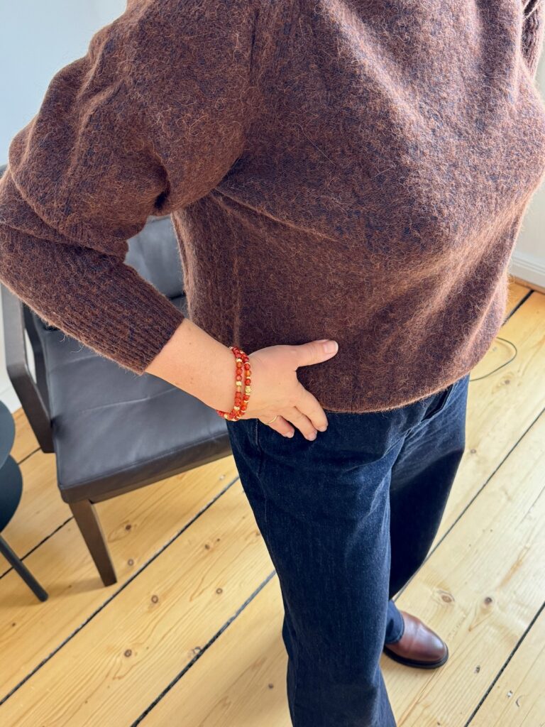 Outfitinspirationen 6. Woche 26-lifewithaglow-weite dunkelblaue Jeans-brauner Rollkragenpullover-braune Stiefeletten-Armbänder Pera Schmuckmanufaktur
